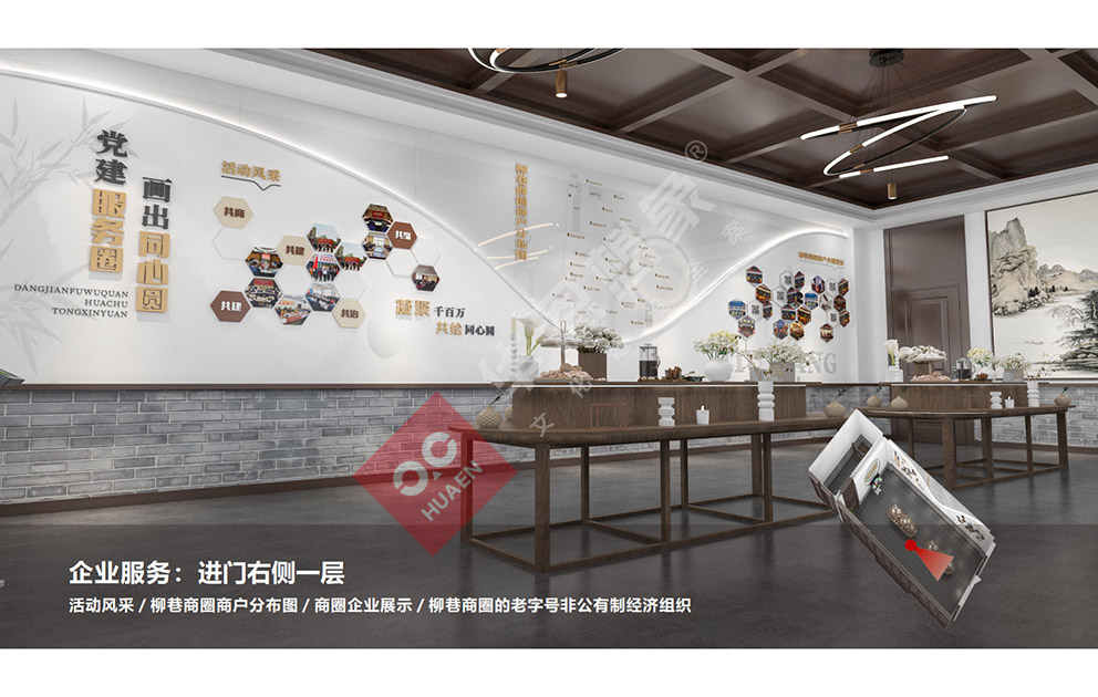 設計理念:太原市迎澤區(qū)柳巷商圈黨群服務中心秉承整體主題大把控,細節(jié)小處做文章。我們力圖充分運用現(xiàn)代設計語言, 強調人文展示特點,通過采用圖文展板展柜,集合弧幕投影等多媒體手段,圍合出一個個相對獨立的專題空間。打造一個具有想象力的、精致的、高品位的主題展覽館。打造集黨建展示、組織生活、政務服務、實境體驗 等為- -體的“有溫度、聚人氣”的商圈黨群服務中心。