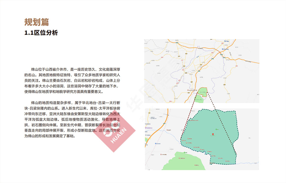 設(shè)計理念:綿山位于山西省介休市,是一座歷史悠久、文化底蘊深厚的名山。其地質(zhì)地貌特征獨特,吸引了眾多地質(zhì)學(xué)家和研究人員的關(guān)注。綿山主要由石灰?guī)r,白云巖和砂巖構(gòu)成,山體上分布著許多大大小小的溶洞,這些溶洞中儲存了大量的地下水,使得綿山在地質(zhì)學(xué)和地貌學(xué)研究方面具有重要意義。錦山的地質(zhì)構(gòu)造復(fù)雜多樣,屬于華北地區(qū)-呂梁一太行斷塊-日梁塊隆內(nèi)的山系。進入新生代以來,庫拉-太平洋板塊俯沖帶向東遷移,亞洲大陸東緣由安第斯型大陸邊緣轉(zhuǎn)化為西太平洋溝弧盆大陸邊緣?;『蟮芈镔|(zhì)活動激化。導(dǎo)致地慢上拱,巖石圈側(cè)向伸展。至新生代中期,晉獲斷裂帶長治段出現(xiàn)垂直走向的局部伸展開裂,形成小型斷陷盆地。這些地質(zhì)變化為綿山的形成和發(fā)展奠定了基礎(chǔ)。