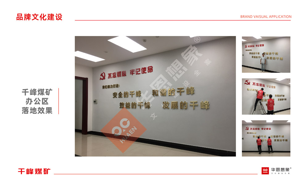 服務(wù)項目:目視化設(shè)計落地包含: 一、辦公區(qū)目視化設(shè)計落地,有辦公園區(qū)標(biāo)識牌、大門形象等等;二、辦公區(qū)目視化文化墻設(shè)計制作安裝;三、辦公區(qū)大廳文化建設(shè);四、礦區(qū)礦坑口大廳文化長廊設(shè)計安裝五、礦區(qū)照壁標(biāo)識設(shè)計制作安裝